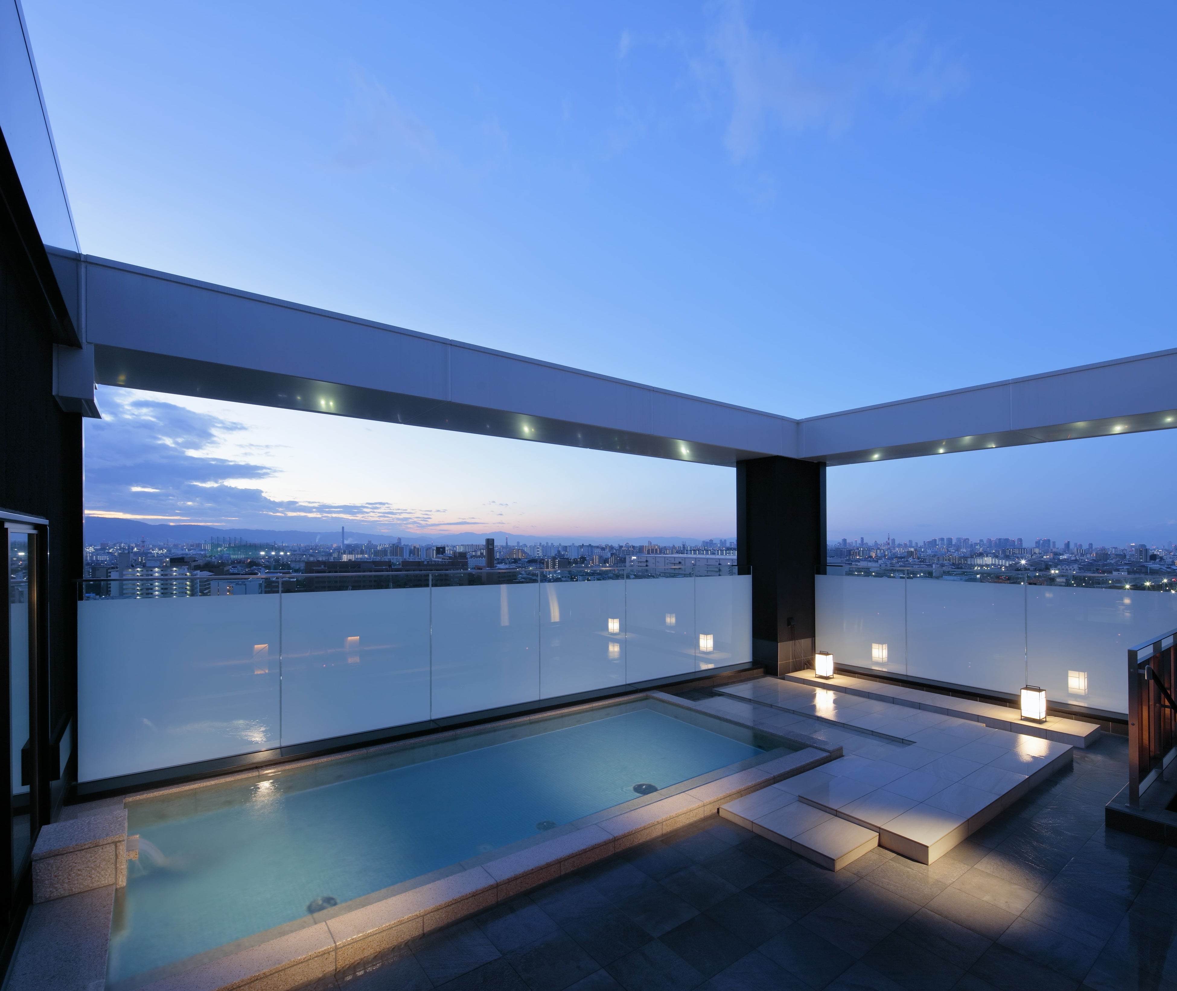 新大阪駅まで電車で約10分という市街地にありながら、心行くまでリラックスできる露天風呂。澄んだ空、美しい夕景をダイレクトに感じられる開放的な空間が広がります。