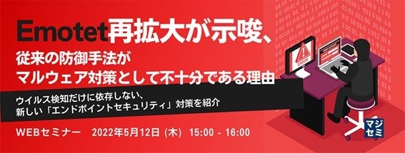 【5/12開催オンラインセミナー】「Emotet」再拡大が示唆、従来の防御手法がマルウェア対策として不十分である理由~ウイルス検知だけに依存しない、新しい「エンドポイントセキュリティ」対策を紹介~