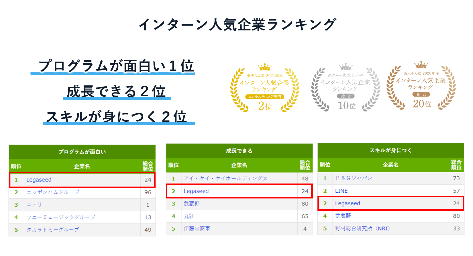 楽天みん就インターン人気企業ランキング「プログラムが面白い」企業1位にランクインしたLegaseedが学生エントリー数20,000名を突破!