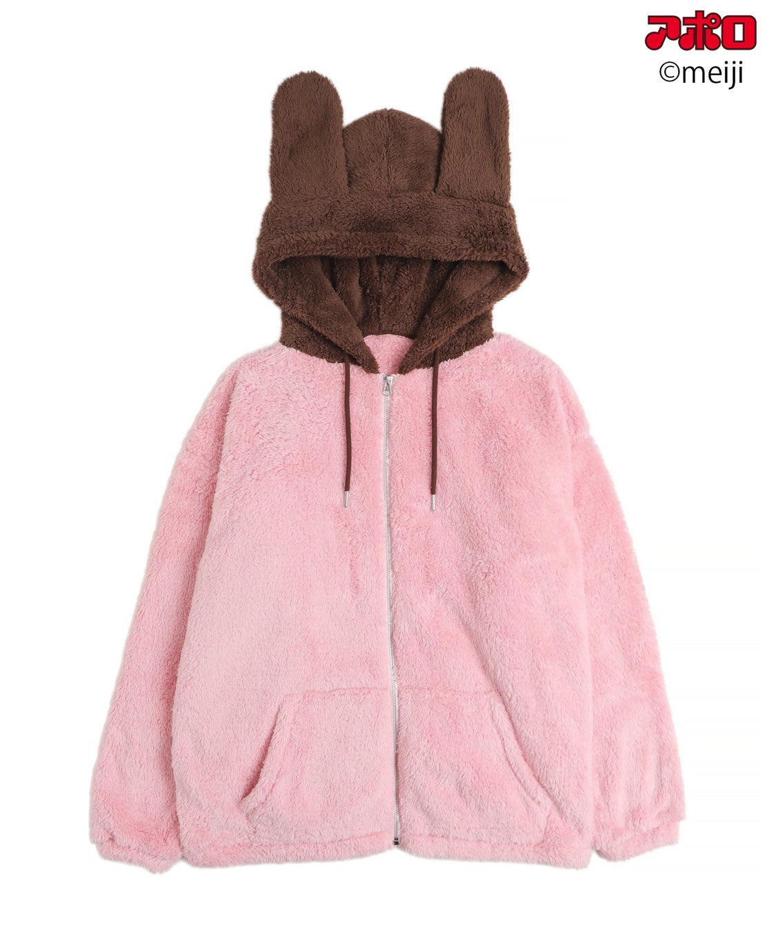 今回発売となるコラボレーションアイテムは、アポロのパッケージやチョコレート、「アポロ」キャラクターの「アポロちゃん」とその仲間「みるぽろちゃん」をモチーフに、WEGOの人気アイテムに落とし込んだアパレルと小物を展開。着るだけで「アポロちゃん」になりきれるZIPパーカーをはじめ、一緒にお出かけできるぬいぐるみ型のショルダーバッグやキーホルダー、アポロチョコレートが大きくなった立体型のポーチなど、全6型を販売致します。