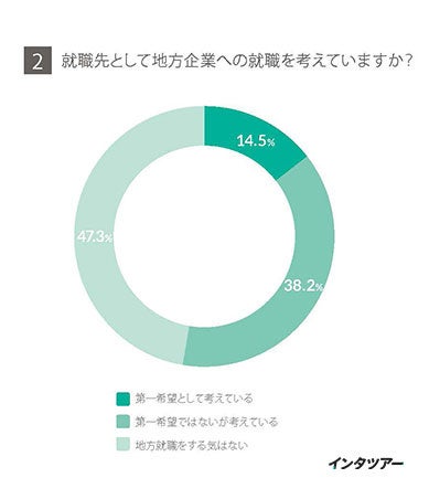 一方で、半数近い47.3%の学生は、「地方企業への就職は考えていない」と回答してします。