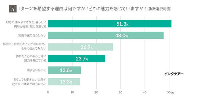 - Iターンを希望する理由「地方での暮らしに魅力」「実家を出て自立したい」