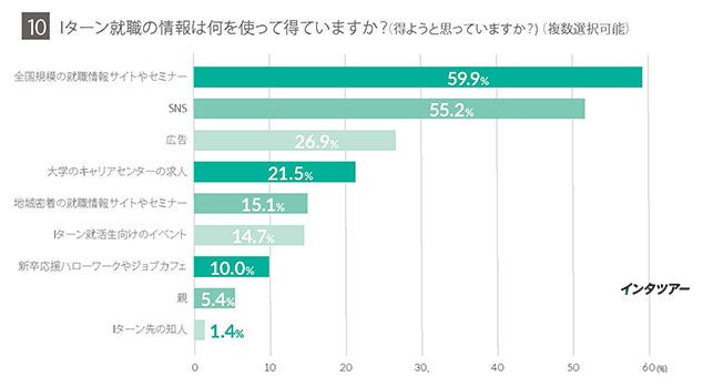 - Iターン就職の情報収集方法「就職情報サイトやセミナー」「SNS」が上位