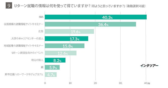 - Uターン就職の情報収集方法「SNS」40.3%が最多