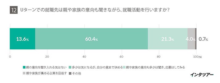 【設問12】では、Uターン就職の場合に親や家族の意向がどの程度影響するかについて、聞きました。