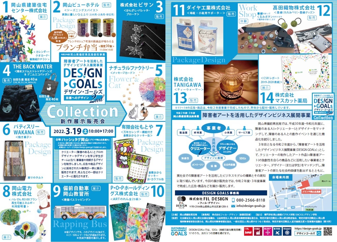 医療用品メーカーのダイヤ工業株式会社(本社:岡山県岡山市 代表:松尾浩紀)は、令和2年度「障がい者アートを活用したデザインビジネス展開事業(DESIGN GOALs)」に参加し、完成した商品の販売を令和3年度新作展示販売会で行います。新作展示販売会は2022年3月19日(土)に岡山市北区にあるブランチ岡山北長瀬内のハッシュタグ岡山において開催されます。