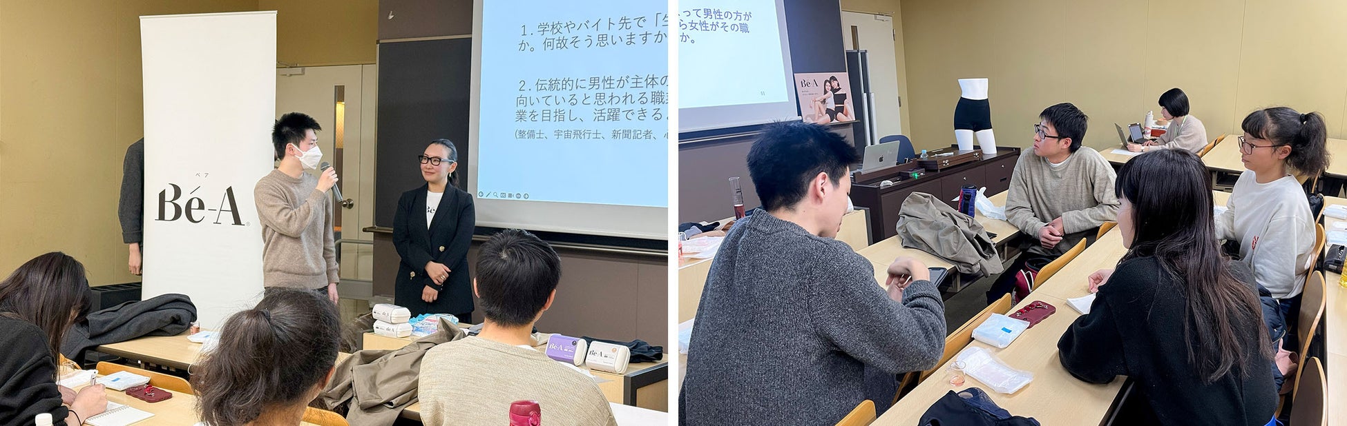 セミナーは、Be-A Japan代表の髙橋と、商品開発責任者の中村が登壇。現代社会におけるジェンダー課題に焦点を当てながら、参加者が生理というテーマを通じてジェンダーの理解を深めるための4つのセッションで構成しました。
