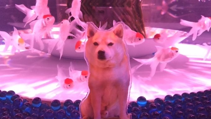 豆柴のアクリルスタンドと金魚の華麗なるコラボ!?