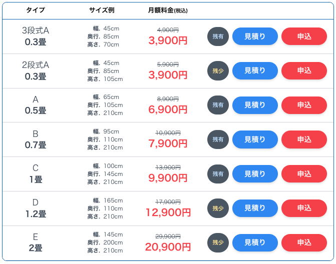 荷物以上に大きな部屋を借りてしまうことや、狭すぎて荷物が入らなかったなんていうトラブルを回避できます。