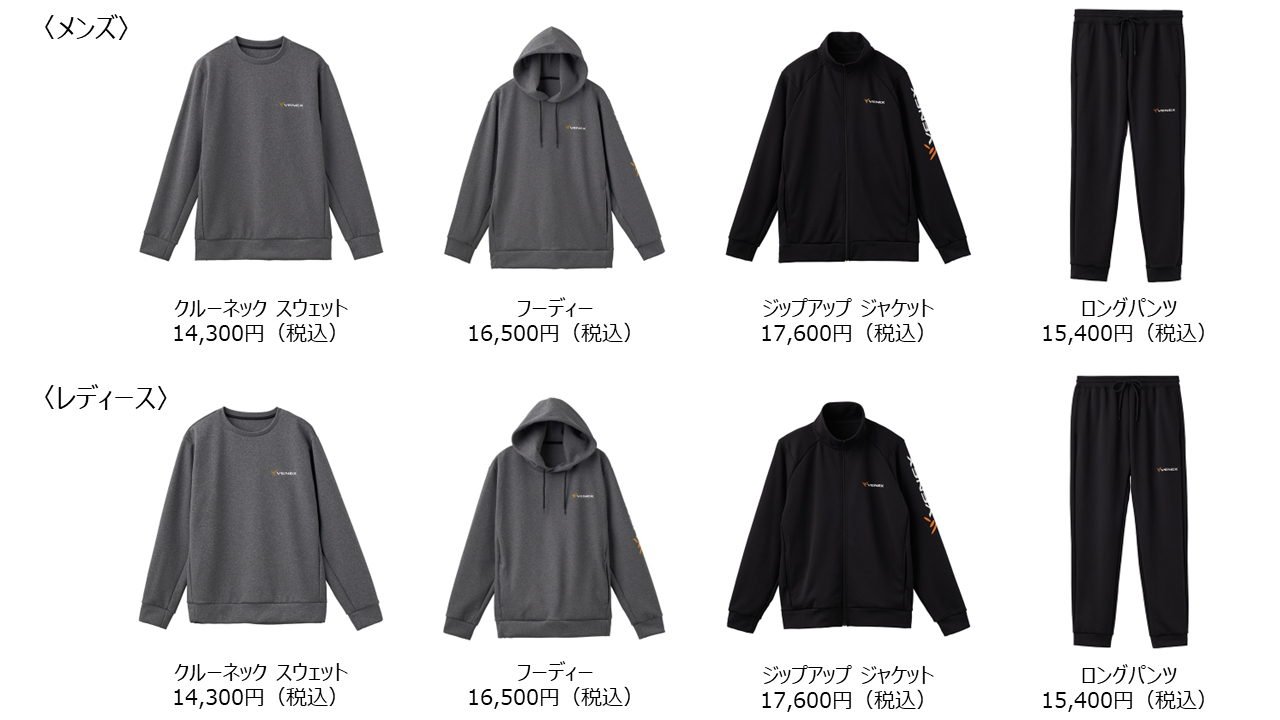 すべてのアイテムにおいて、リラックス時の姿勢でストレスを感じないよう、前身頃に脇の縫い目を配置する“リカバリー設計”にしています。『フーディー』と『ジップアップ ジャケット』の左腕外側には、大きなVENEXのロゴを施し、スポーティーなデザインに。さらに、『フーディー』、『ジップアップ ジャケット』、『ロングパンツ』にはポケットを、『ロングパンツ』にはウエストの調節が可能な紐を付けるなど、移動時の心地よさや利便性を追究しています。