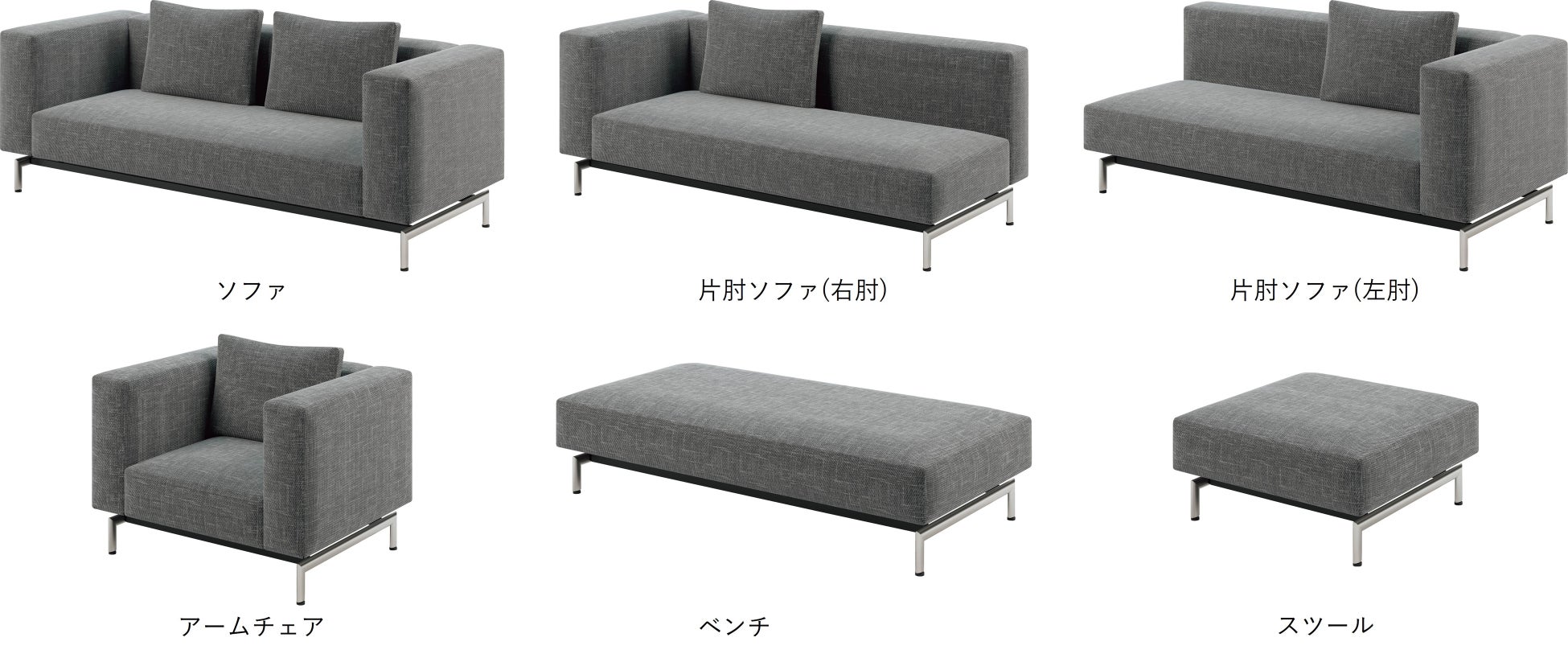 価格(税込)は、「ソファ」605,000円~、「片肘ソファ(右肘・左肘)」517,000円~、「アームチェア」462,000円~、「ベンチ」321,200円~、「スツール」262,900円~の5種類に加え、テーブルアイテムの「センターテーブル」275,000円~、「サイドテーブル」195,800円~、「サイドボックステーブル」236,500円~、「カフェテーブル」106,700円~をラインアップしています。