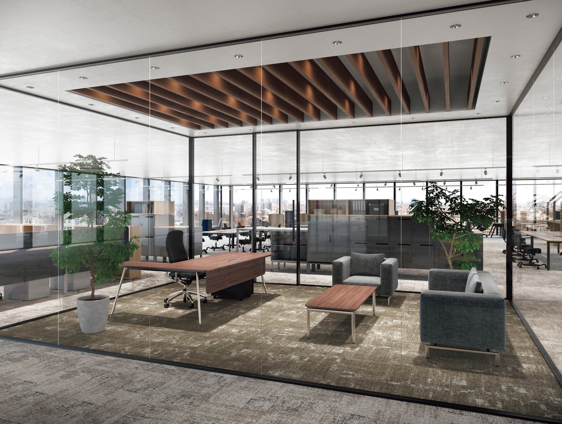 プラスのフラッグシップエグゼクティブモデル『Dolcevita』は、イタリア語で「贅沢で快適な空間」を表現しています。役員室や応接室だけでなく、エントランスやレセプションなど、お客様をお迎えするための上質な空間をニーズに合わせて柔軟に創り上げます。