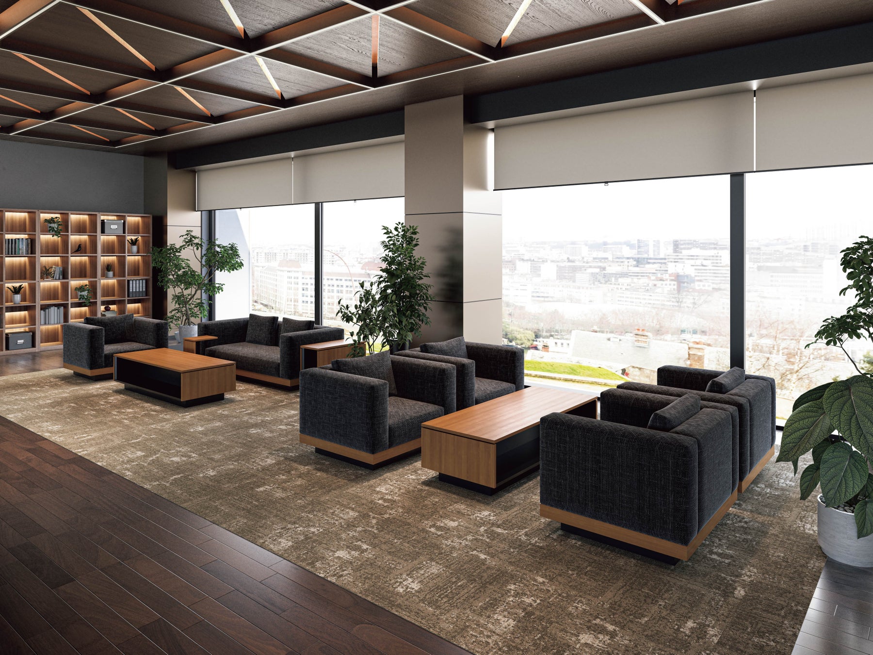 ソファ単体にとどまらず、それぞれの特徴を生かしたテーブルや多彩な張地バリエーションを組み合わせることで、さまざまなオフィスシーンに対応し、自由度の高いレイアウトを実現します。