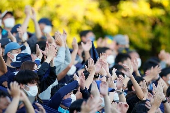 引き続き、会話や歓声、声出し応援など発声する場面ではマスクの着用をお願いいたします。