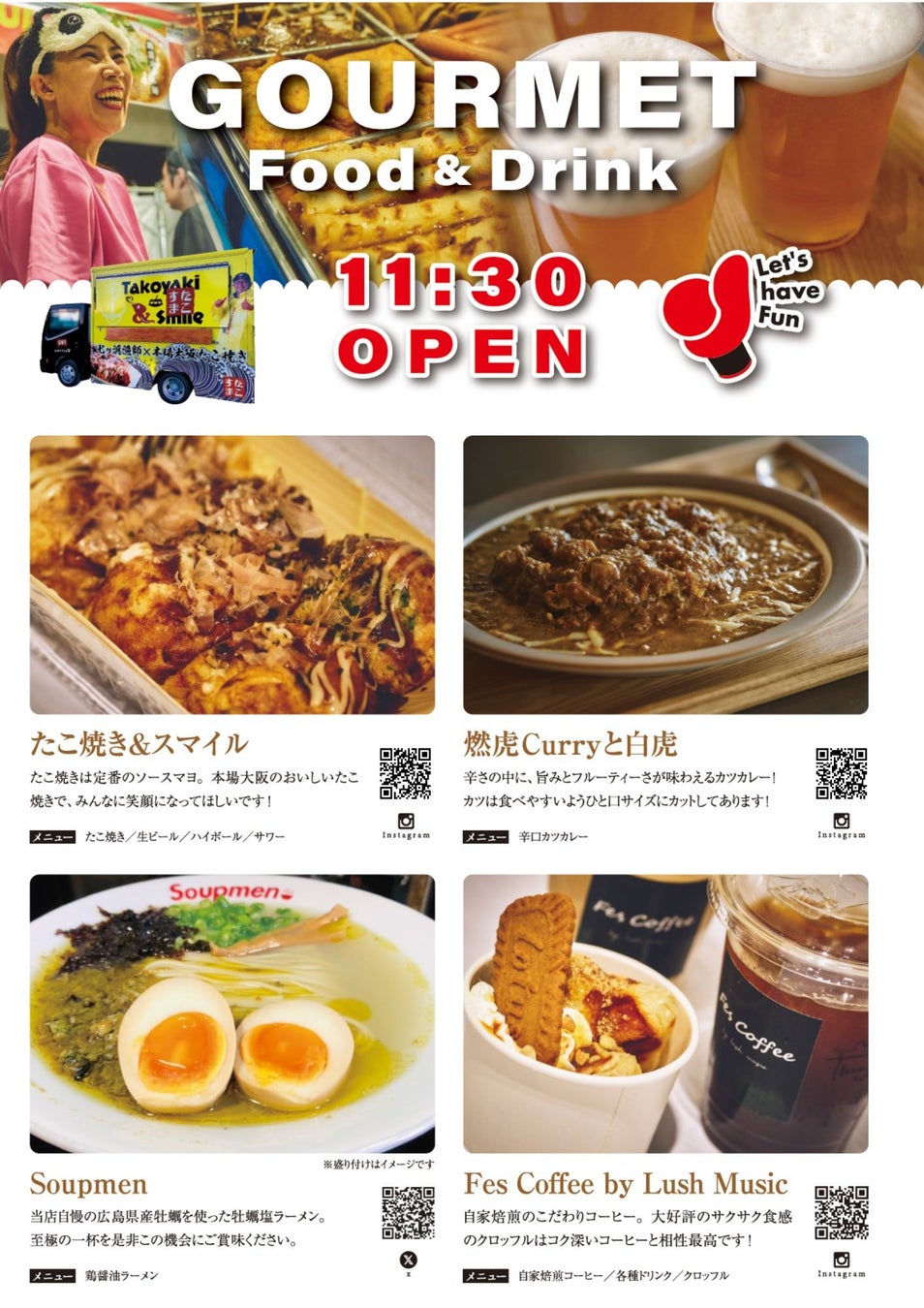 生ビールやハイボールなどのドリンクと一緒に、3150×LUSHBOMU名物の地元グルメを、ぜひご堪能ください。
