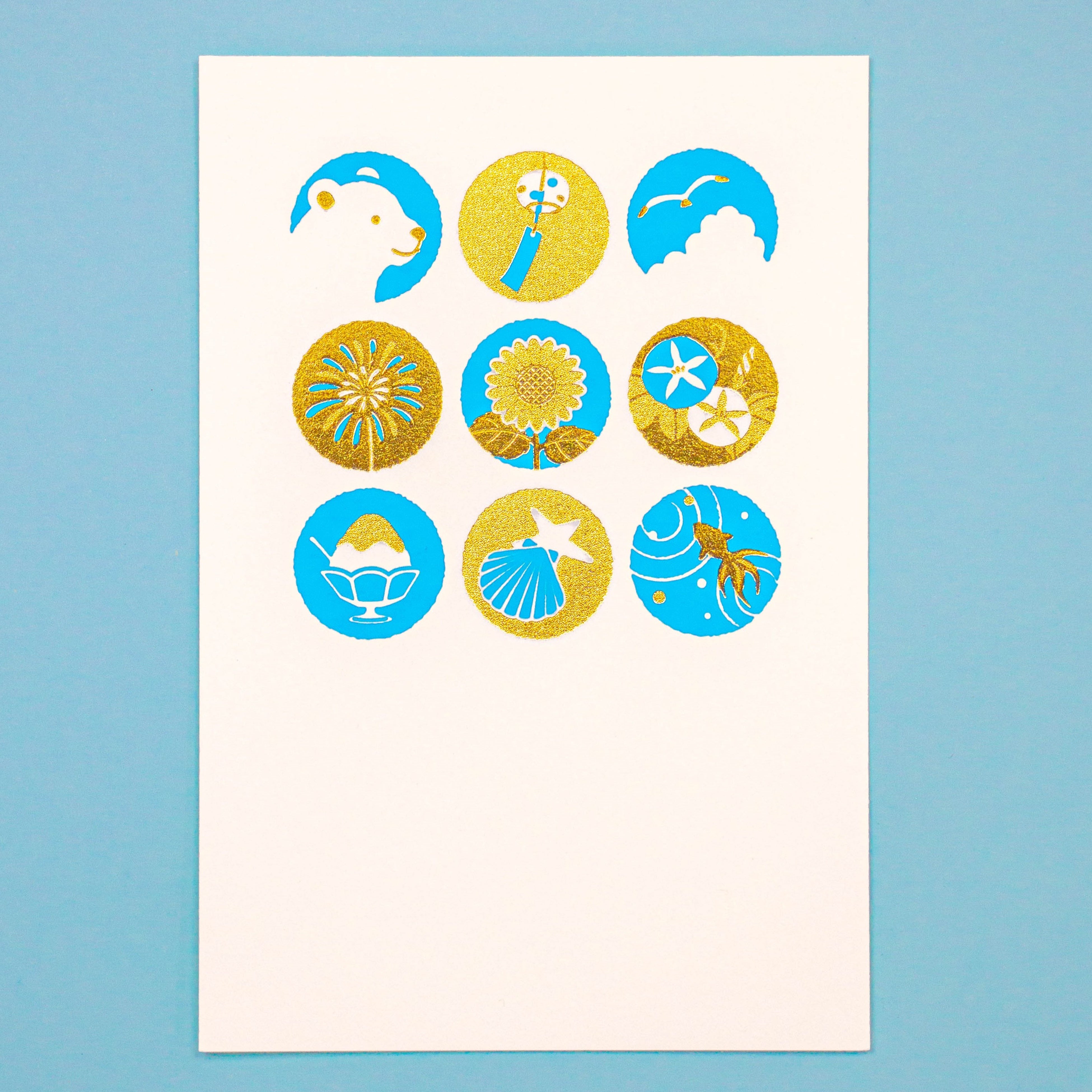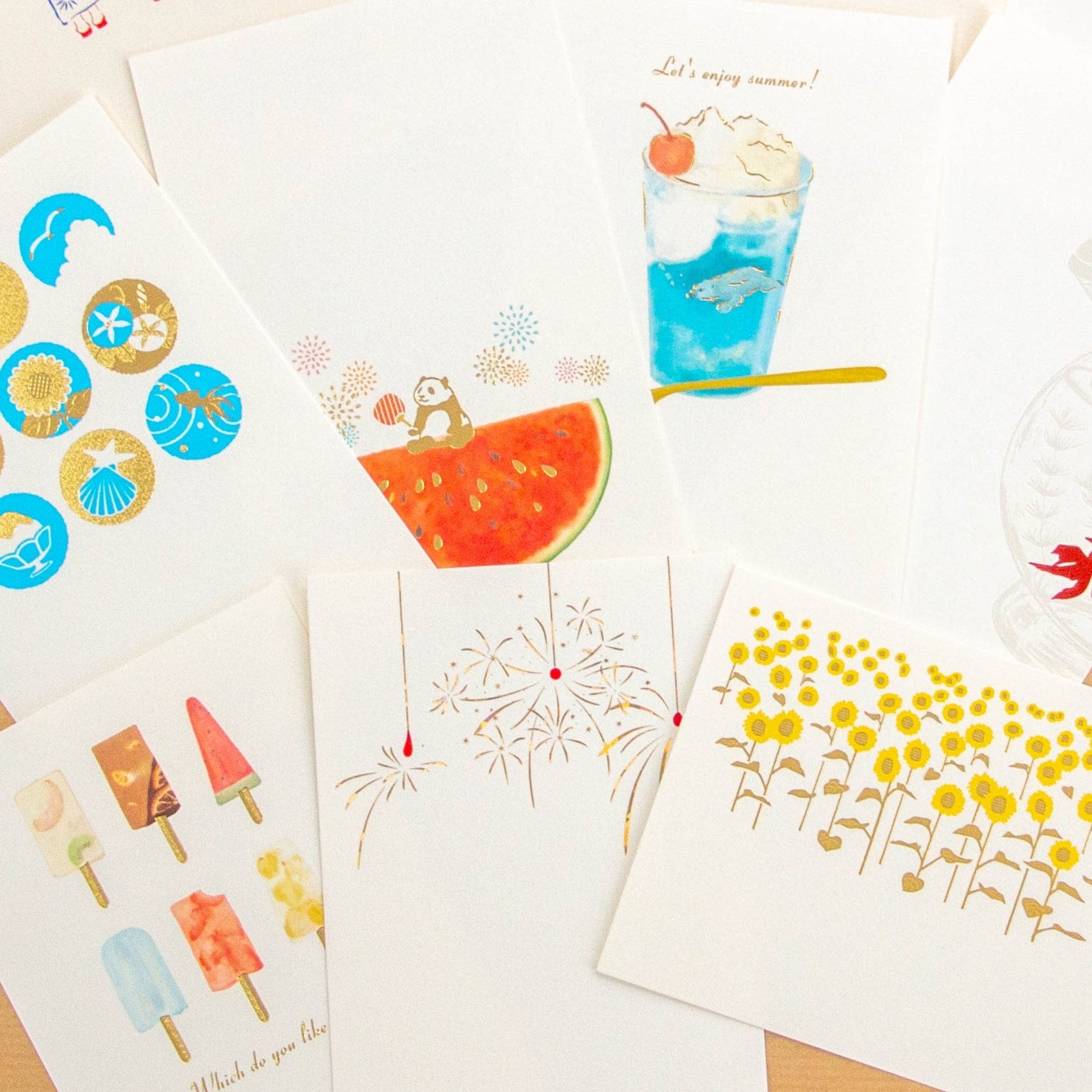 箔押しペーパーアイテムブランド『ROKKAKU』では、暑中見舞いにぴったりな夏のデザインのはがきを取り扱っています。