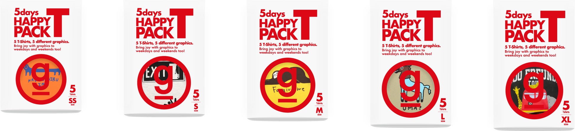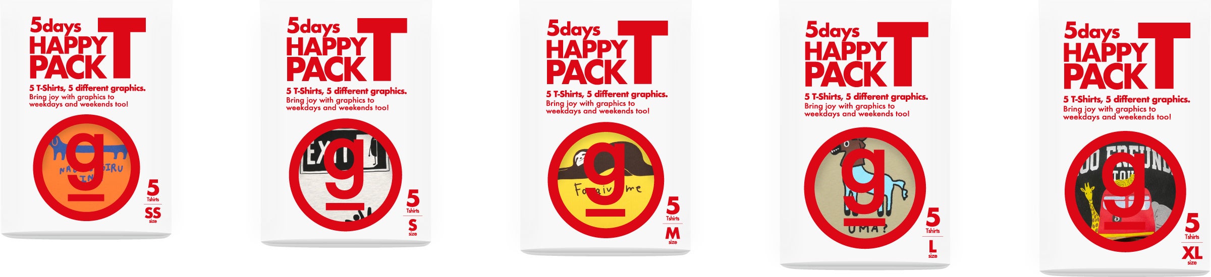 グラニフが5days HAPPY PACK Tを発売。平日も休日も、毎日をグラフィックで楽しく。グラフィックTシャツ5枚パックをお求めやすい価格でお届けします。