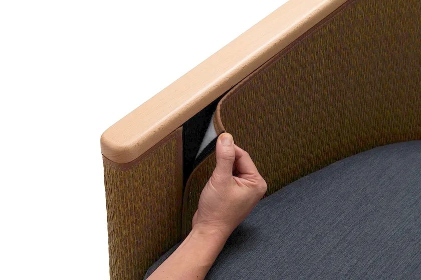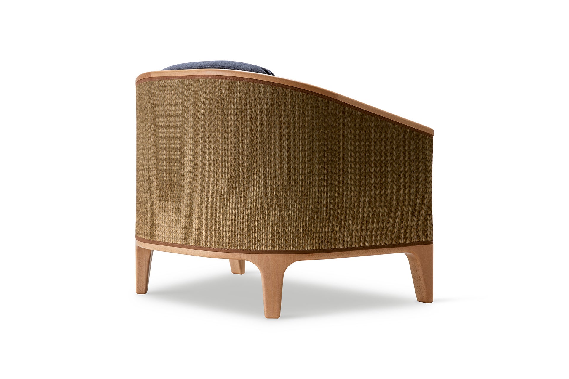 「BOKU Lounge Chair」は、肘から背にかけて日本の伝統素材“い草”を用いた精緻な仕上げが特徴のラウンジチェアです。デザイナーのクトゥ・マスエロス氏が、初来日した際に訪れたホテルロビーの空間に衝撃を受けた経験をもとに、日本と西欧の文化、美意識が融合する“和洋折衷”のデザインを現代的に再構築しました。