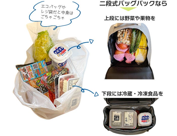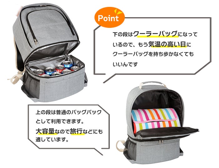 買い物もアウトドアもこれ一つ。保冷付き二段式バッグパックが登場