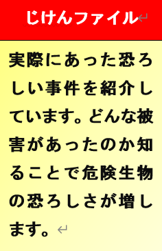 大きなイラストで危険生物が見られるので、ワクワクがとまりません。危険生物の危険レベルや、大きさ、住んでいる環境などがわかります。ほかの危険生物と比べてすごいところがある危険生物には「いちばん」アイコンがついています。また実際にあった事件を紹介する「じけんファイル」で、危険生物の恐ろしさがわかります。