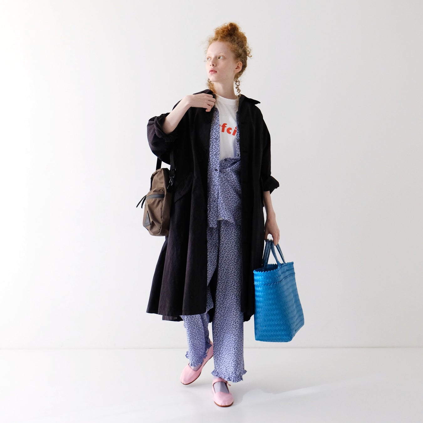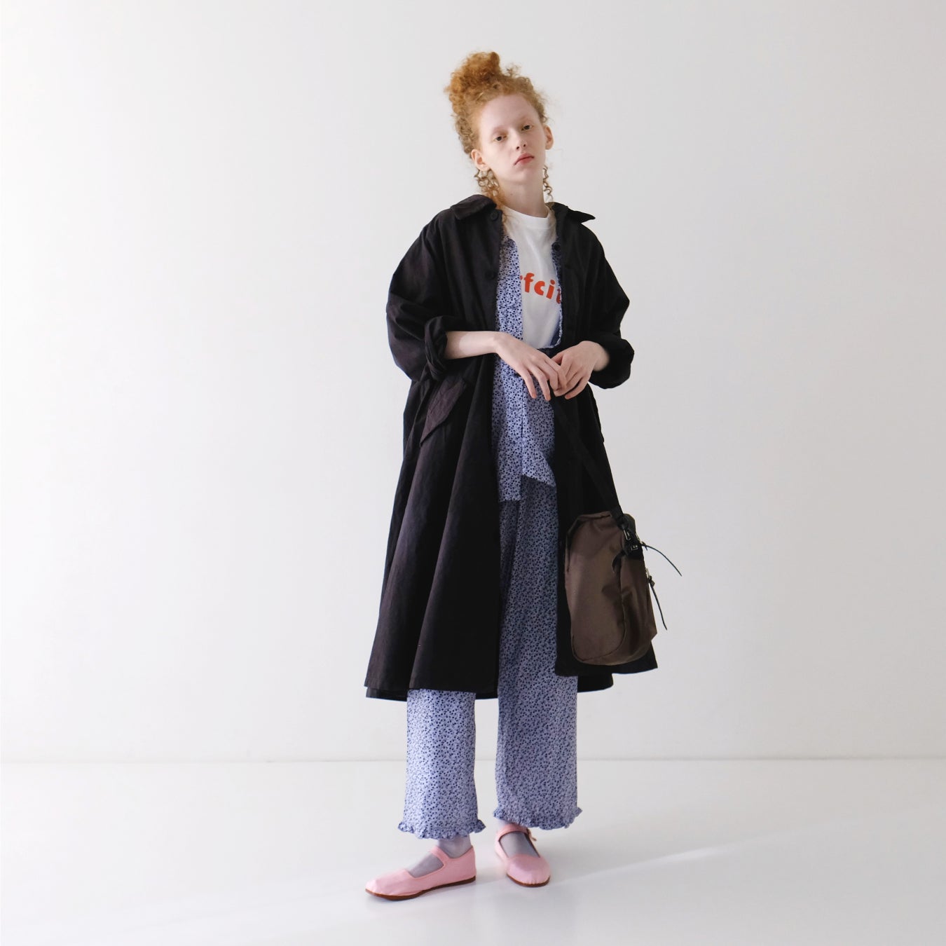 コットンポプリンの軽い着心地と、ゆったりとしたサイズ感が気持ちの良い新作アイテム。オーバーサイズのブラウスと、裾にフリルをあしらったイージーパンツが展開。