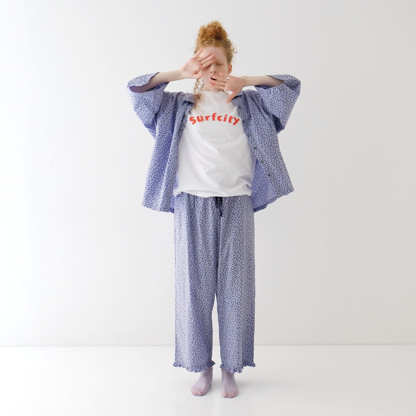 コットンポプリンの軽い着心地と、ゆったりとしたサイズ感は、おうち時間にもストレスフリーで過ごせる。