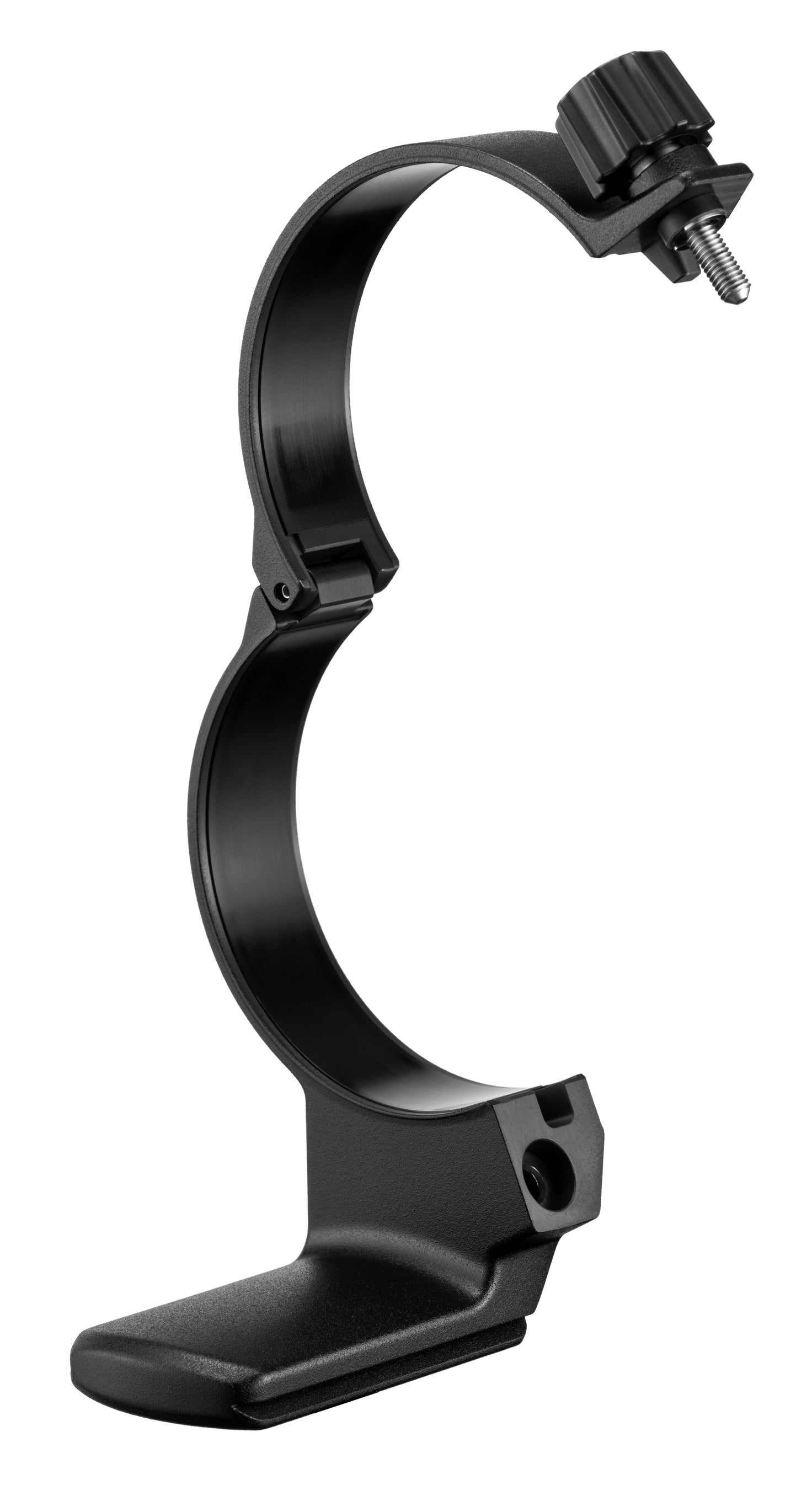 新設計の三脚座は、カメラをレンズに装着したままでも三脚座の着脱が可能です。また、レンズフットの形状は持ち易い形状とし、アルカスイスタイプのクランプに対応しています。