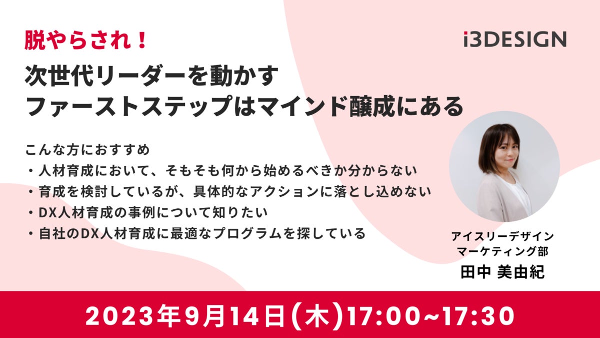 【9月14日(木)17時開催】「脱やらされ!次世代リーダーを動かすファーストステップはマインド醸成にある」をテーマにオンラインセミナー開催