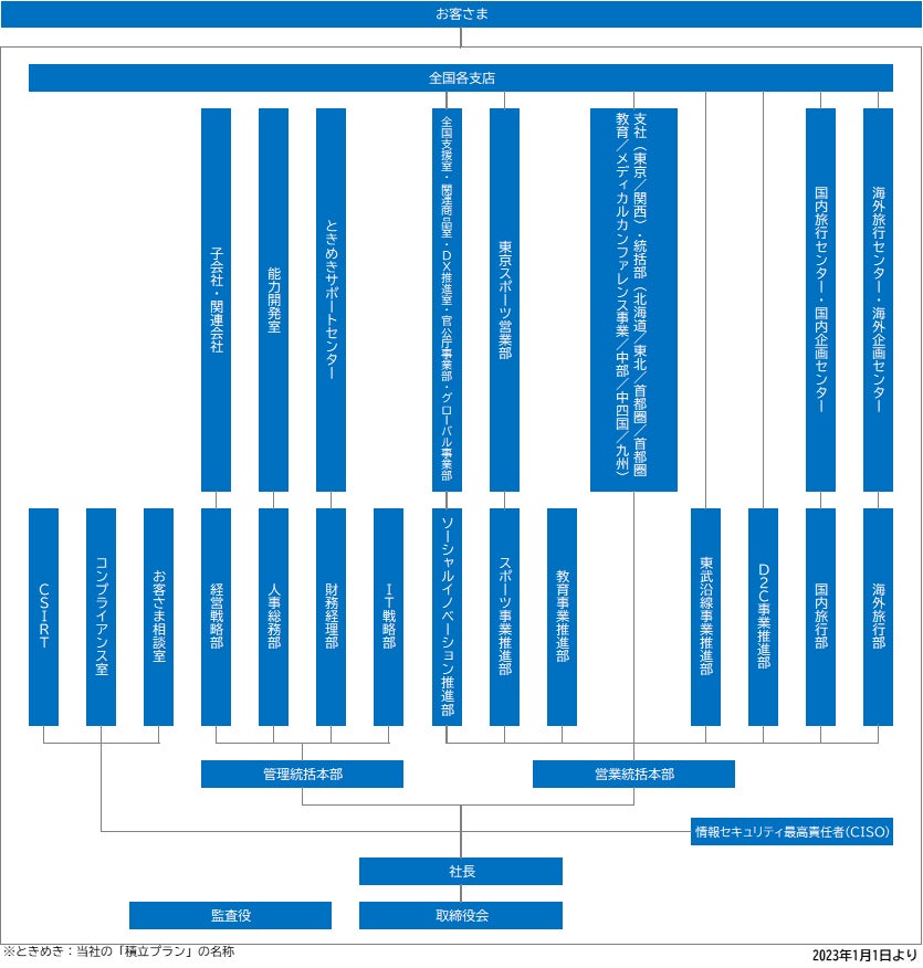 東武トップツアーズ株式会社(本社:東京都墨田区、社長:百木田康二)は、2023年1月1日付で次のとおり組織改正を実施いたします。