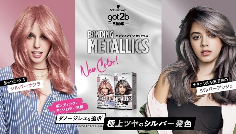 今回、髪を内側から保護・強化*するボンディング・テクノロジーを搭載し、極上ツヤ×シルバー発色でメタリックな質感を楽しめる「got2b ボンディング・メタリックス」から、昨今人気のくすんだピンクやシルバーのトレンドを受け、桜のように淡いピンクの「シルバーサクラ」とナチュラルな透明感の「シルバーアッシュ」の2色が新たに登場します。