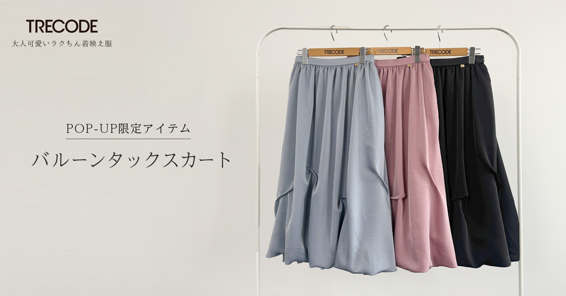 POP UP SHOP限定【TRECODE/トレコード】バルーンタックスカート発売。北海道から九州まで、売り場だけのオリジナルアイテムとしてデザインスカートを企画。