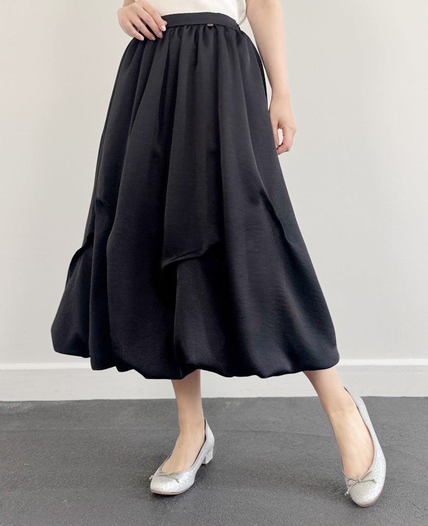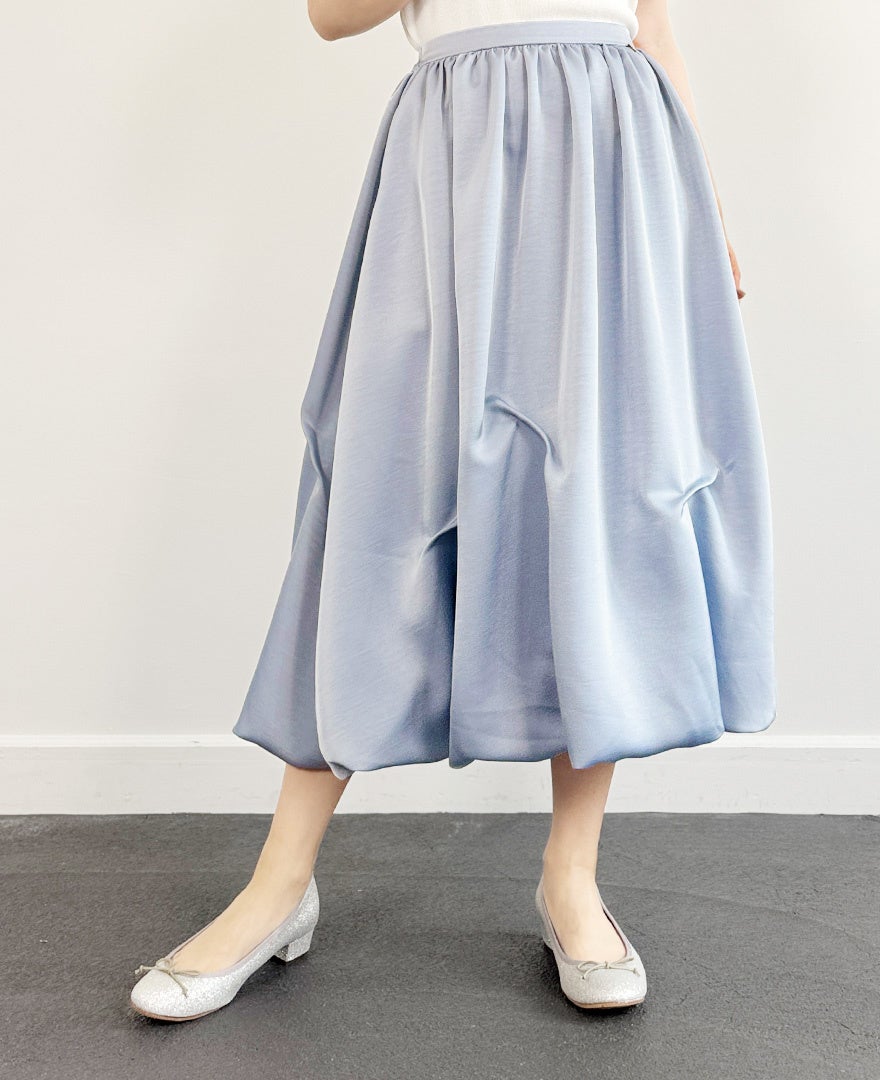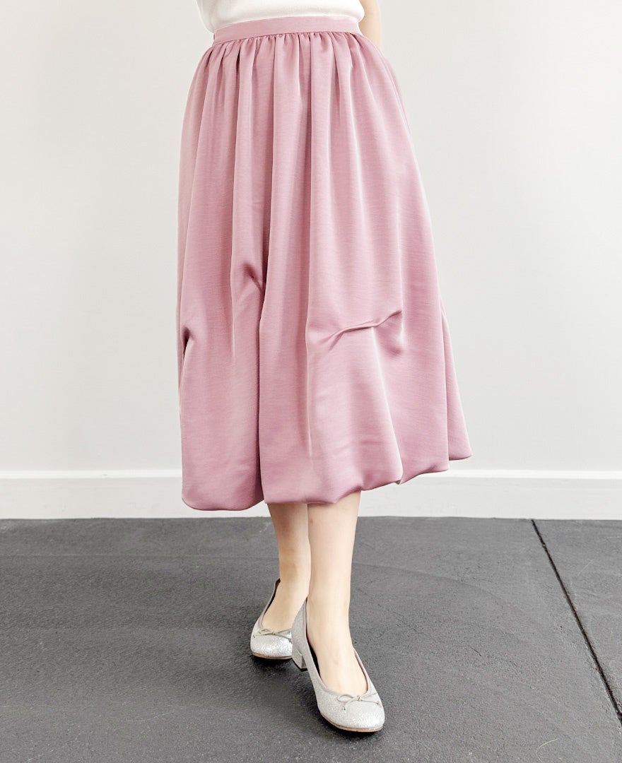 バルーンスカートなのにボリュームが出すぎない!そんな素材選びからこだわっています。タックの入れる位置も慎重に華奢見えすることを意識して配置しました。
