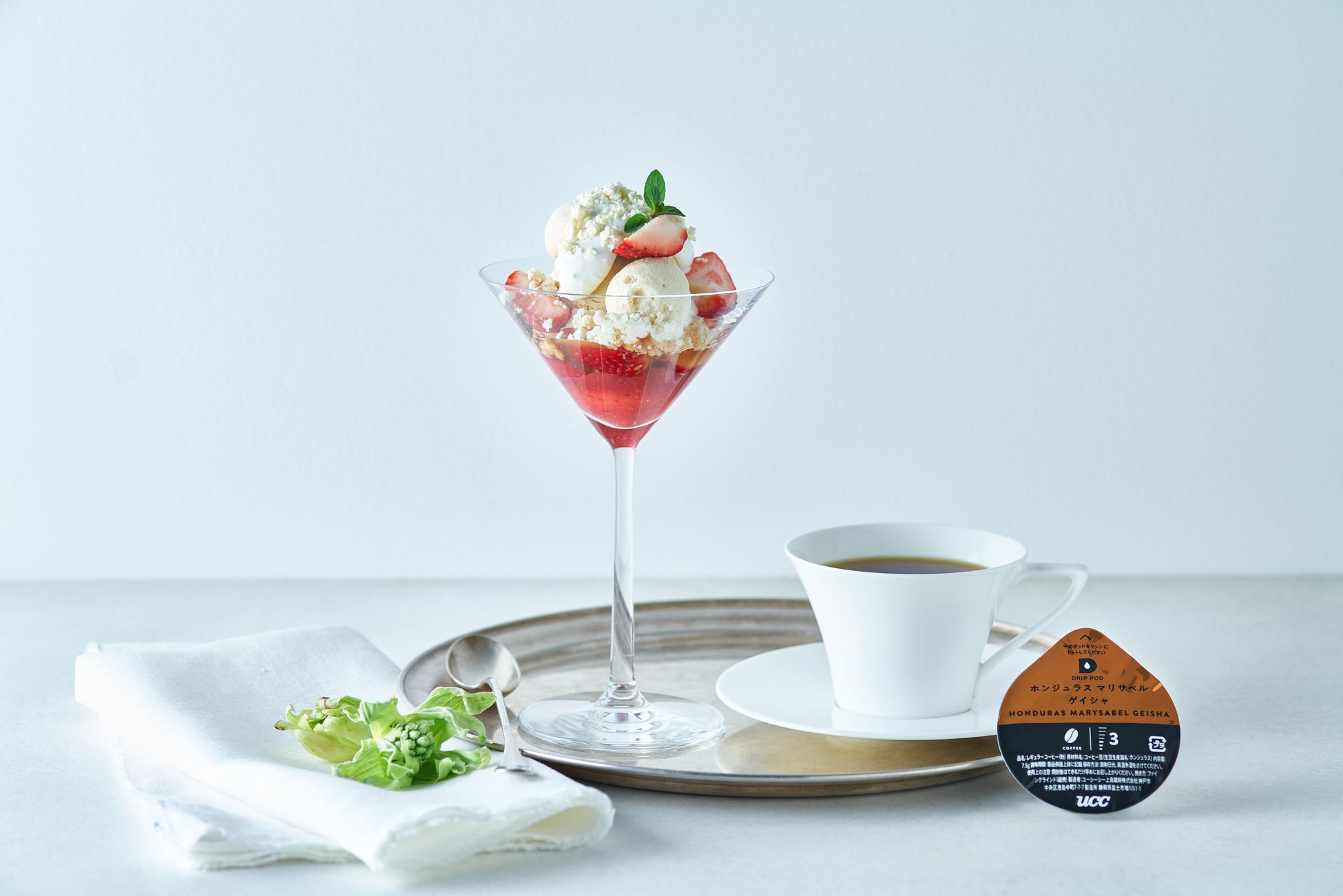コーヒーとパフェを一緒に口に含むことで、『ホンジュラス マリサベル ゲイシャ』の特徴である、華やかな香りをより引き立て、長く続く甘い余韻をお楽しみいただけます。
