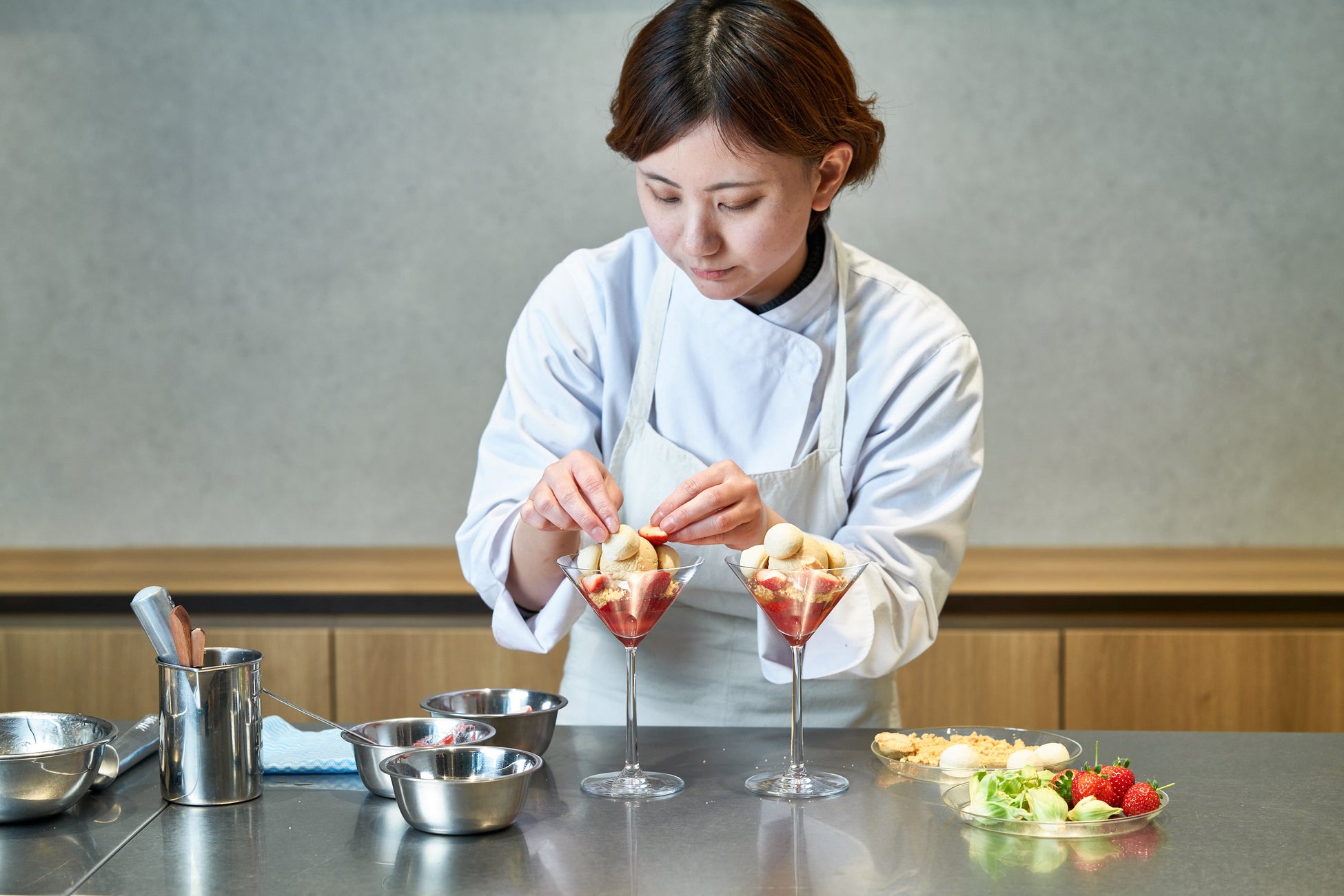 イベントでは、四季折々の旬を楽しむ和洋菓子を提案する京都のパティスリーショップ 菓子工房「圭」-Tama- とコラボレーション。仏ミシュラン三ツ星レストラン出身のパティシエが今回のために特別に開発した、季節の苺と蕗の薹を使用したオリジナルパフェとのマリアージュをご提供いたします。