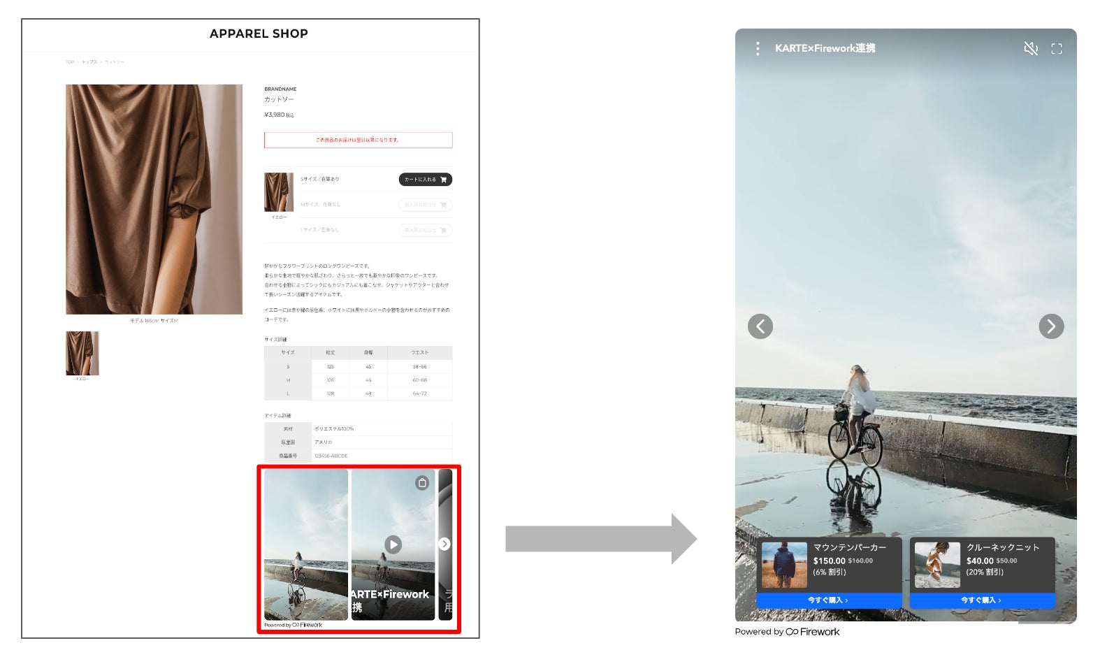 KARTEのコミュニケーション施策やウェブ接客上でFireworkの動画を使用してパーソナライズ配信