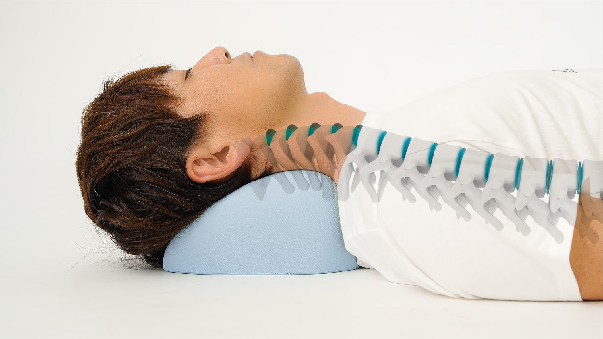 - 「Cellsh首筋ストレッチクッション」は"本来の頸椎の形"を目標に開発しました!