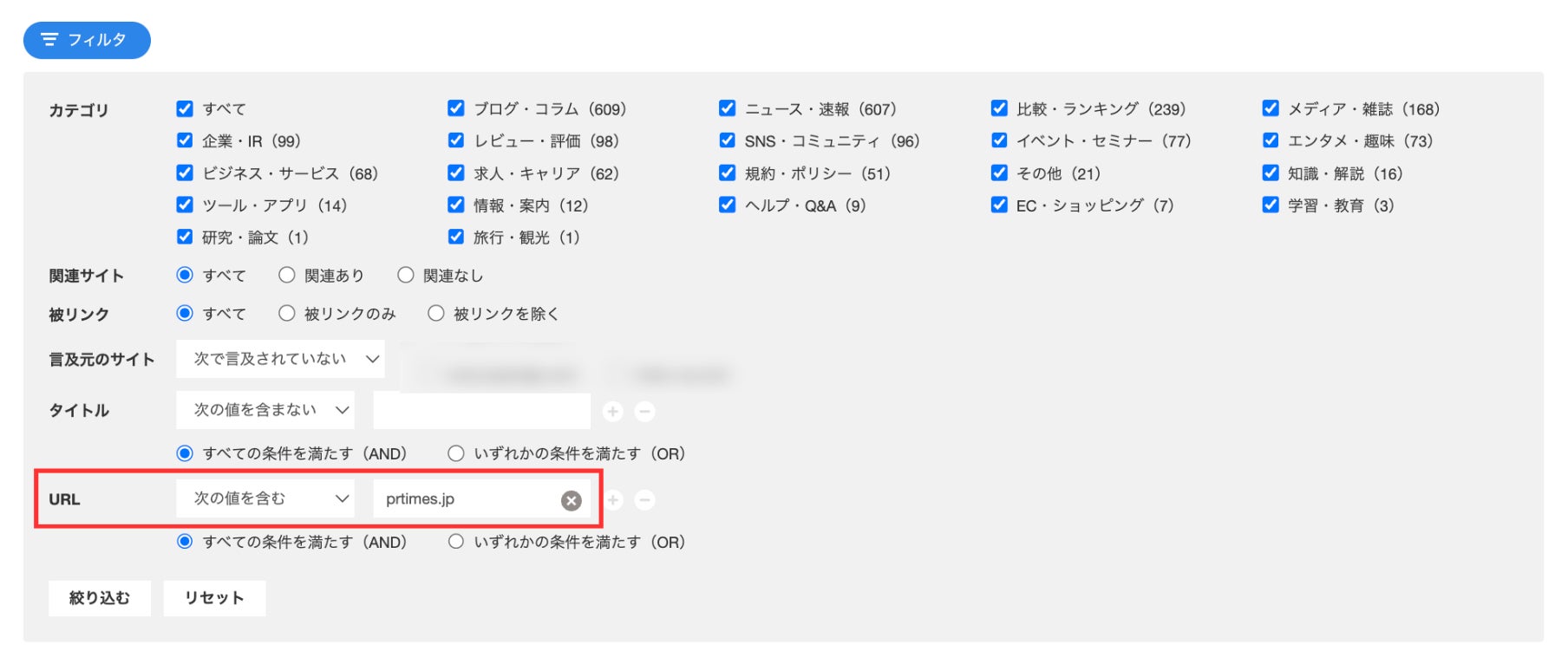 従来より、フィルタ機能を使ってカテゴリ、関連度、被リンクの有無、タイトル情報などを組み合わせて絞り込み、紹介元へアプローチをするためのアクションリストを作ることができました。