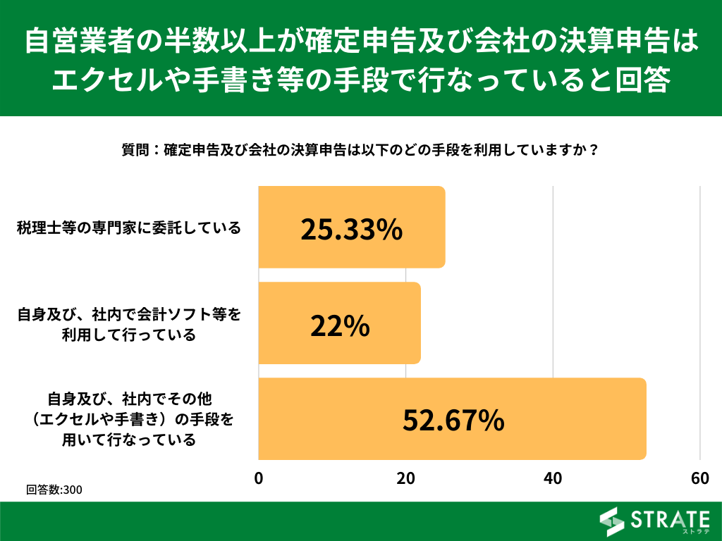 自営業者の52%超が「決算申告はエクセルや手書き等で行なっている」と回答【確定申告、決算申告に関するアンケート】