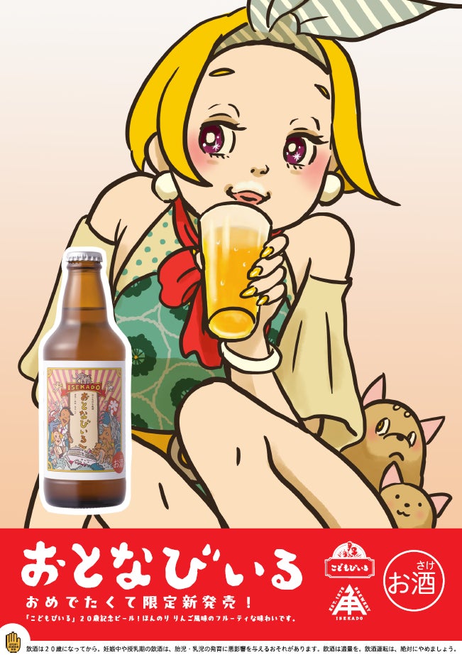 製造は、クラフトビール国際大会最多受賞の伊勢角屋麦酒へ依頼。約半年間の構想の末、「こどもびいるのリンゴ風味」を表現した『おとなびいる』が完成しました。