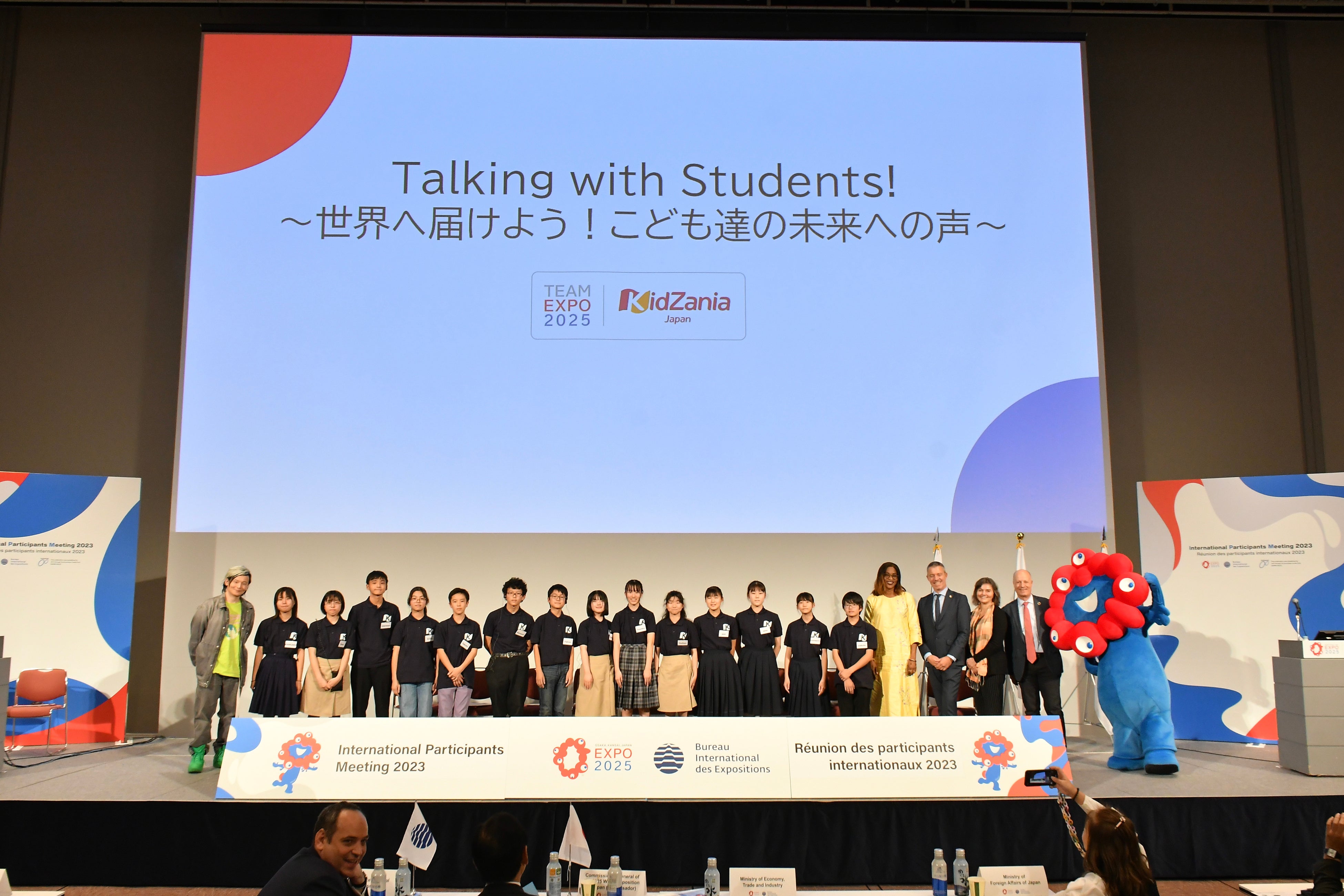 大阪・関西万博「TEAM EXPO 2025」プログラムの共創パートナーであるKCJ GROUPは、キッザニアで集めた約7万人のこども達の未来に向けた声をもとにした提言書を万博協会へ提出し、企業や自治体、教育機関と連携しさまざまなプロジェクト活動を展開してきました。(※2、以下 本プロジェクト)今回“こどもIPM”では、KCJ GROUPが主催するワークショップ(※3)に参加した中学生14名により「ありたい未来」を発表し、国連、各国政府代表メンバーやテーマ事業プロデューサーの宮田裕章氏との意見交換などの機会が設けられました。こどもが登壇する“こどもIPM”は、国内初の試みとなります。