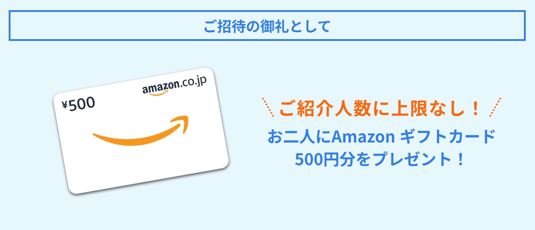 ギフトカード500円分が必ずもらえる紹介キャンペーン実施中!