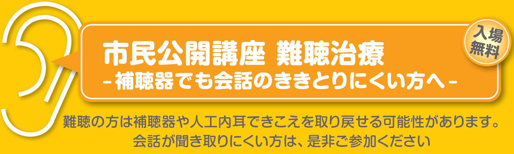 人工内耳は、高度,重度難聴の方が聴こえを取り戻すための治療のひとつです。補聴器でも会話が聞き取りにくい方は、是非ご参加ください。この講座は難聴の有無に関係なく、どなたでも無料でご参加いただけます。
