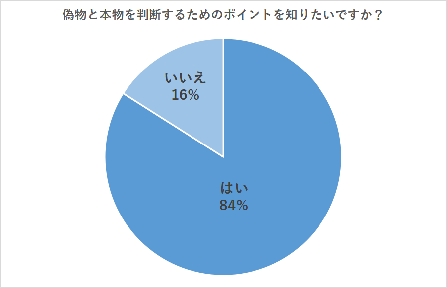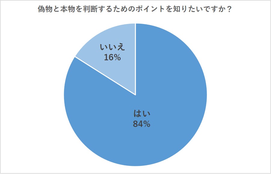 今回「偽物と本物を判断するためのポイントを知りたいですか?」という設問に回答いただいたところ、8割以上の方が「知りたい」と答える結果となりました。