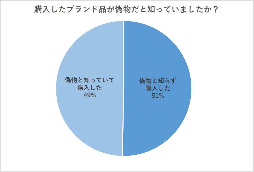 先述した偽物ブランドの購入者に、購入したブランド品が偽物かどうか知っていたか伺ったところ、「偽物と知らず購入した」と「偽物と知っていて購入した」の票数はほとんど変わりませんでした。