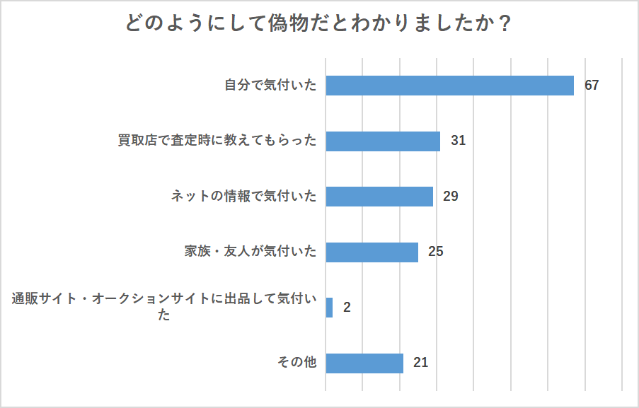 また、偽物と知らずに購入した方は、どのようにして偽物だと気づいたのでしょうか。