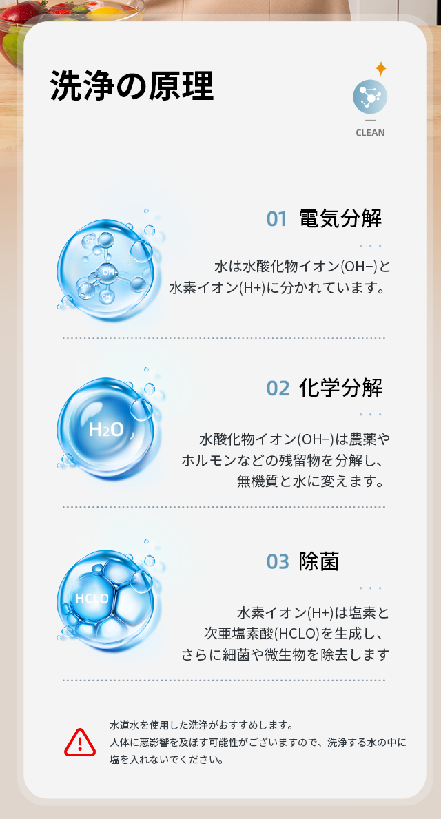 ・ヒドロキシ水浄化技術で食べ物を素早く洗浄