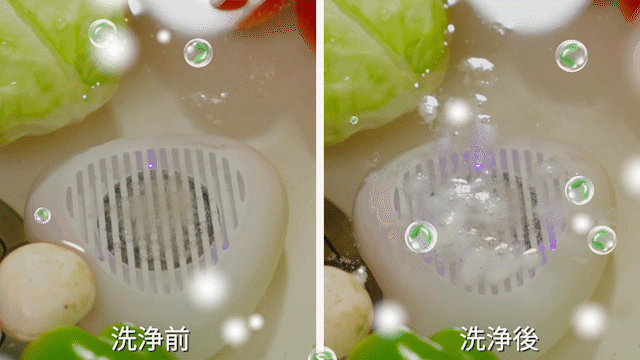 水に入れるだけで野菜を素早く洗浄!小型ワイヤレス洗浄機「HE-X002」
