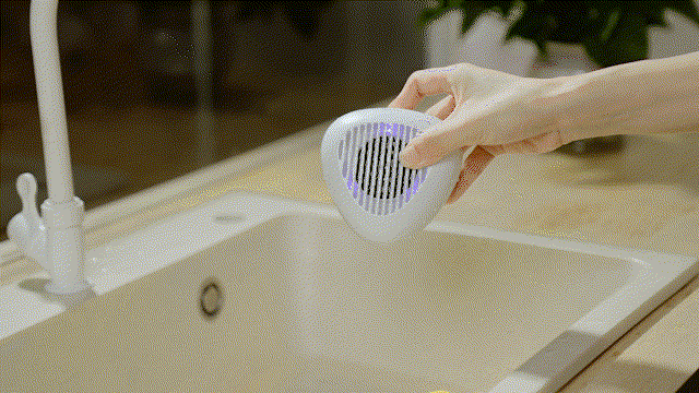 ボタンを押してオンにし、洗いたいものと一緒に水に入れるだけで、10minsの除菌と洗浄を行います。洗浄剤は一切不要で、誰でも使うことができます。