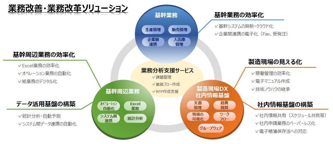日本SEの出展ブースでは、「お客さまの『困った』を共に解決します!」をテーマに、食品製造・卸売業のお客さま向けに業務改善・業務改革ソリューションをご紹介します。