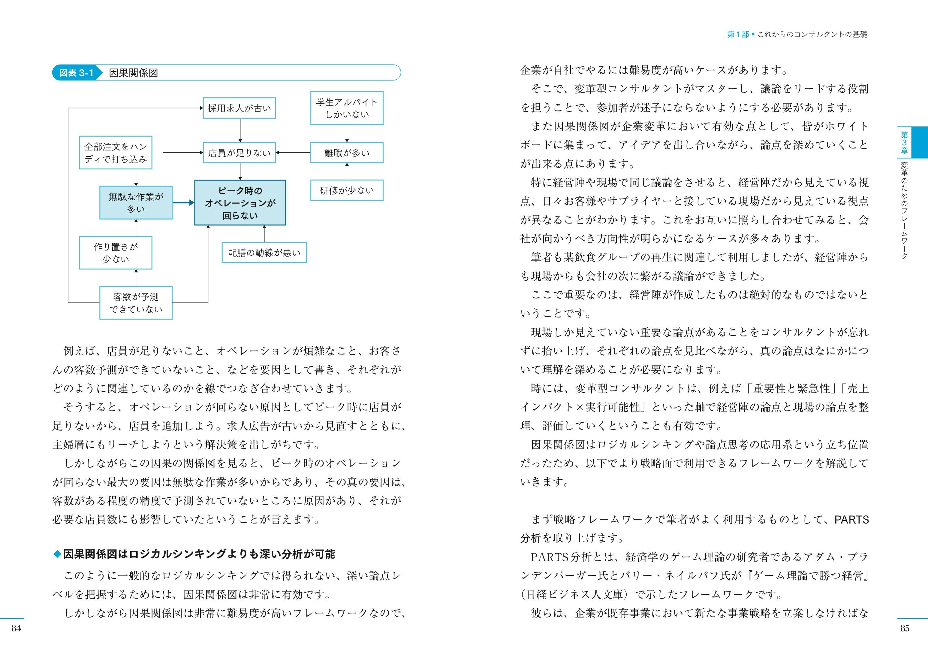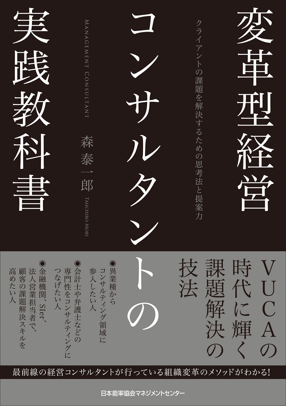 本書は、著者自身が現場で感じた新たなクライアントニーズや、コンサルタントに求められる新たな役割を、実践的内容としてまとめた教科書です。一般的なビジネスフレームワークを解説するようなコンサルティング関連書は多数ある中、本書では「変化の時代に、いかにクライアントを変革に導くか」という、VUCA時代に求められる経営コンサルティングの勘所を押さえられるように、最新のスキルと技・知識を伝授しています。抽象論で終わらず、クライアントの懐に入り込み、課題を解決するための具体的なメソッドを学ぶことができます。